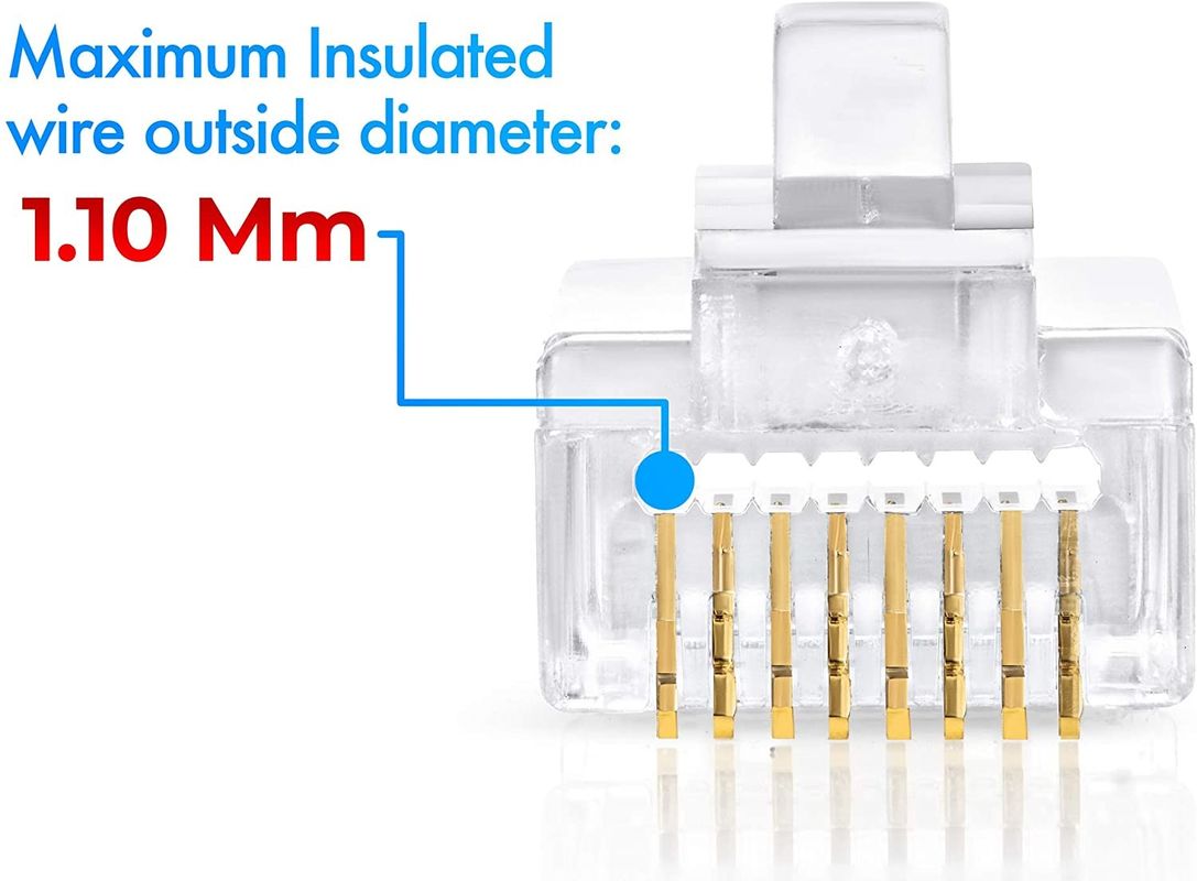 * 최대 절연선 OD (외부 직경)은 1.1 밀리미터이고 23-24 AWG STRANDED와 솔리드 CAT6 케이블을 지원합니다.