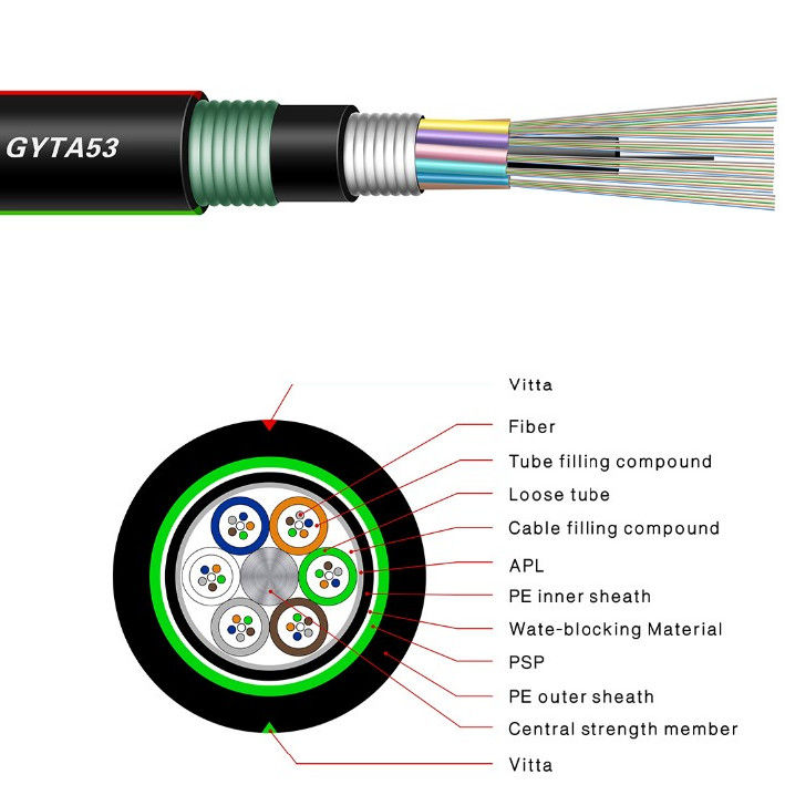 지하 무장한 GYTA53 야외 직접매설식(배관) 루즈 튜브 4 6 8 12 16 18 24 36 48 72 96 144 288 핵심 광섬유 케이블