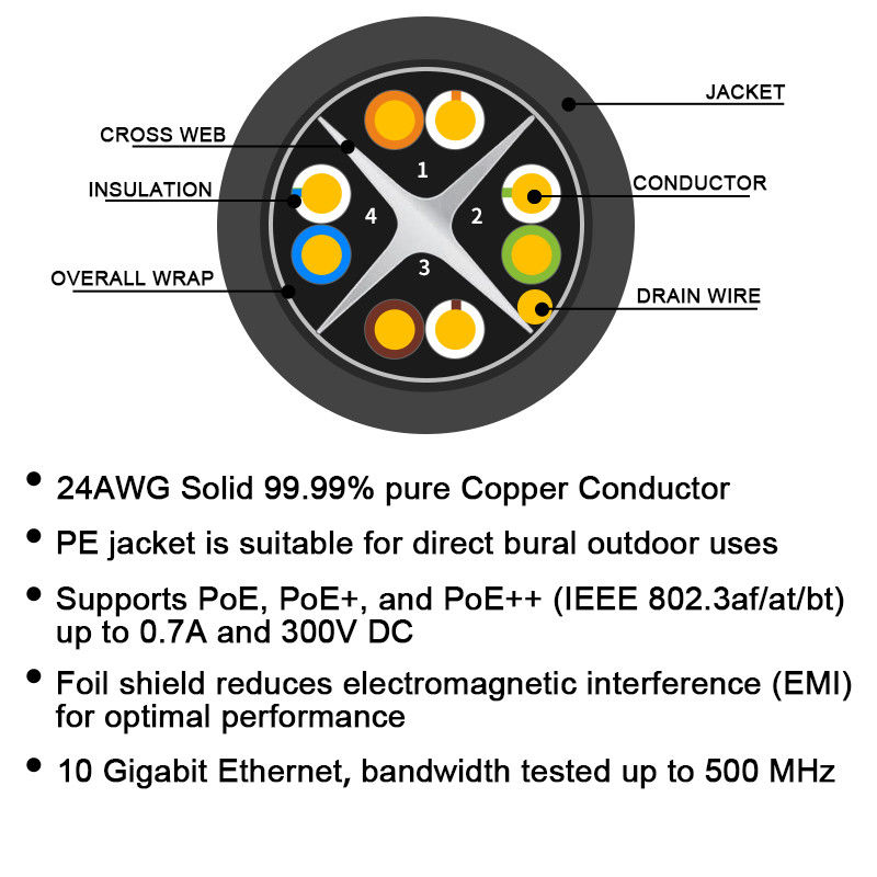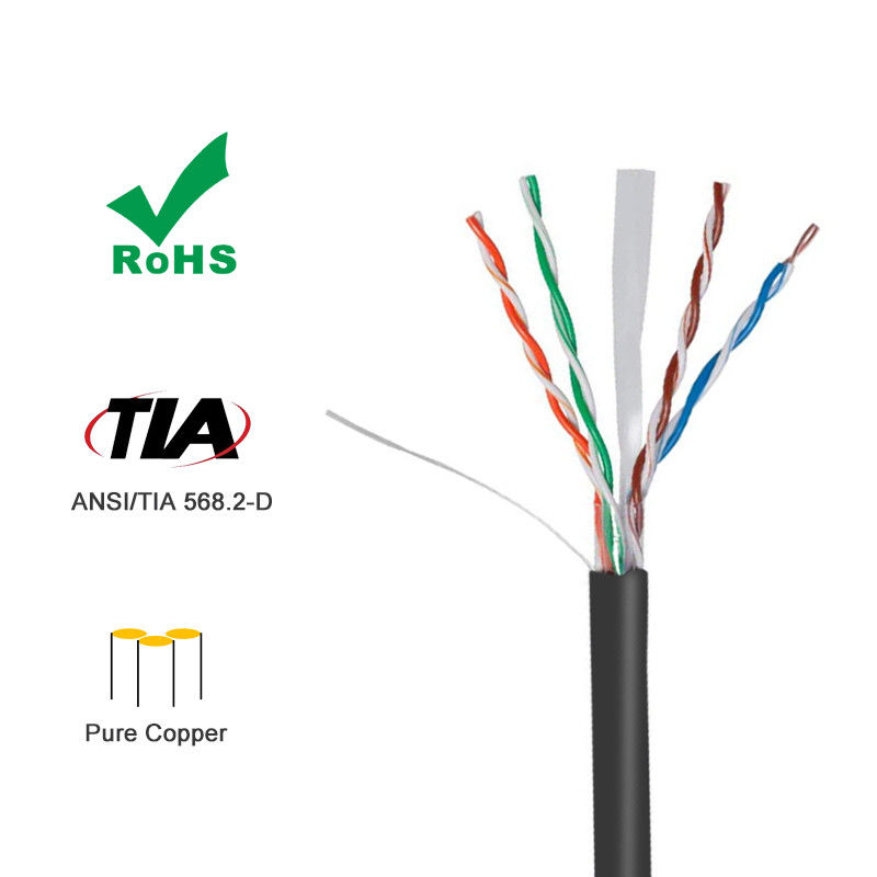 Cat6 UTP 야외 UV 저항하는 방수 검은 22 23 24 AWG 순수한 코펩르 네트워크 크기 이더넷 LAN 케이블 100m 305m 박스
