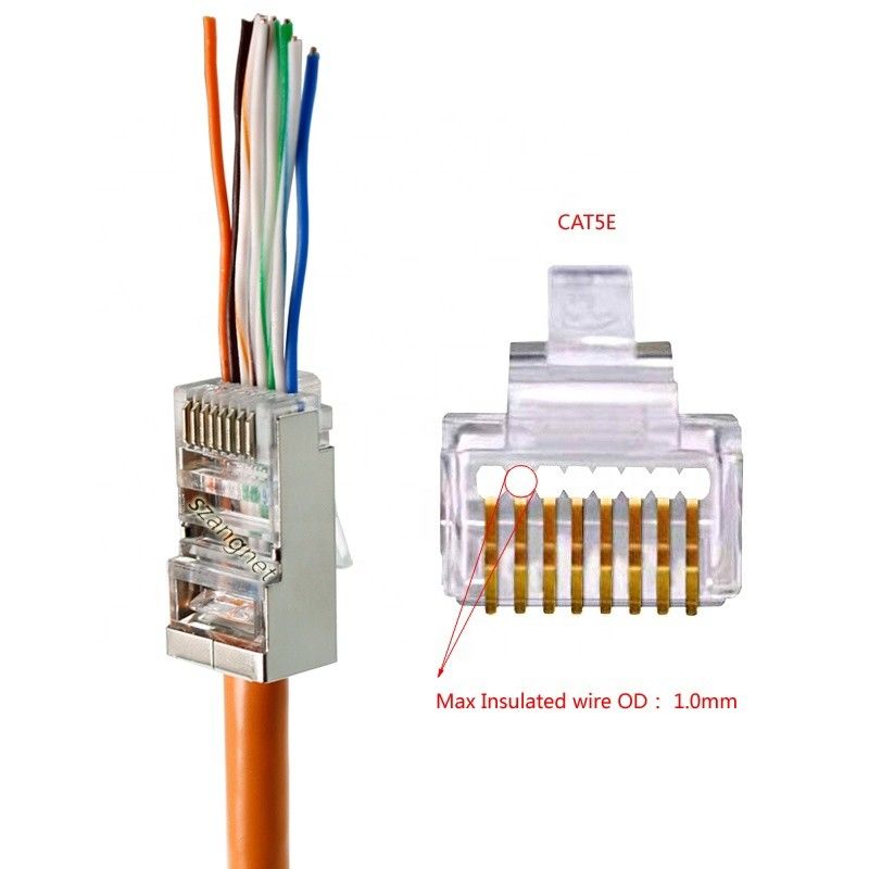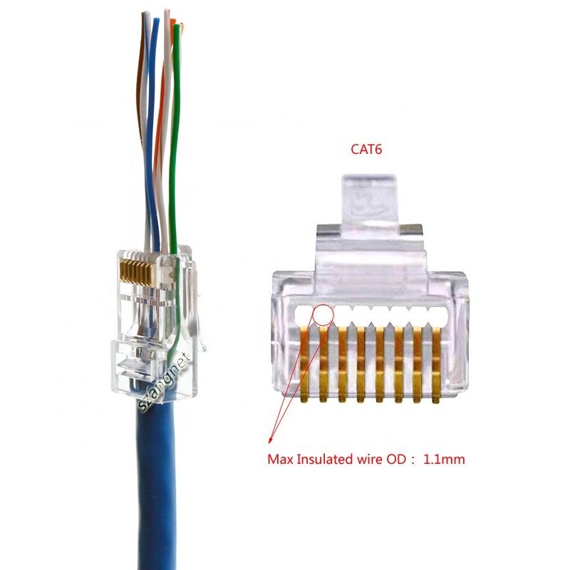 또한 연결기일지라도 RJ45 연결기는 RJ45 통과를 명명했습니다. 그것은 와이어가 연결기를 통하여 그리고 전면 바깥쪽에 삽입될 수 있게 허락합니다, 이 디자인이 쉽게 있고 적절한 배선 순서 (ANSI / 통신 공업회 / EIA)가 종결 속력을 내고 스크랩과 소모를 감소시킨다는 것을 검증합니다. EZ RJ45는 연결기를 지니가고 당신이 맞춘 길이에서 Ethernet 케이블을 만들도록 허락합니다. 그것은 CCTV, 보안 카메라, 라우터, 스위치의 현장 구조를 위한 비용 효율적이 솔루션입니다.